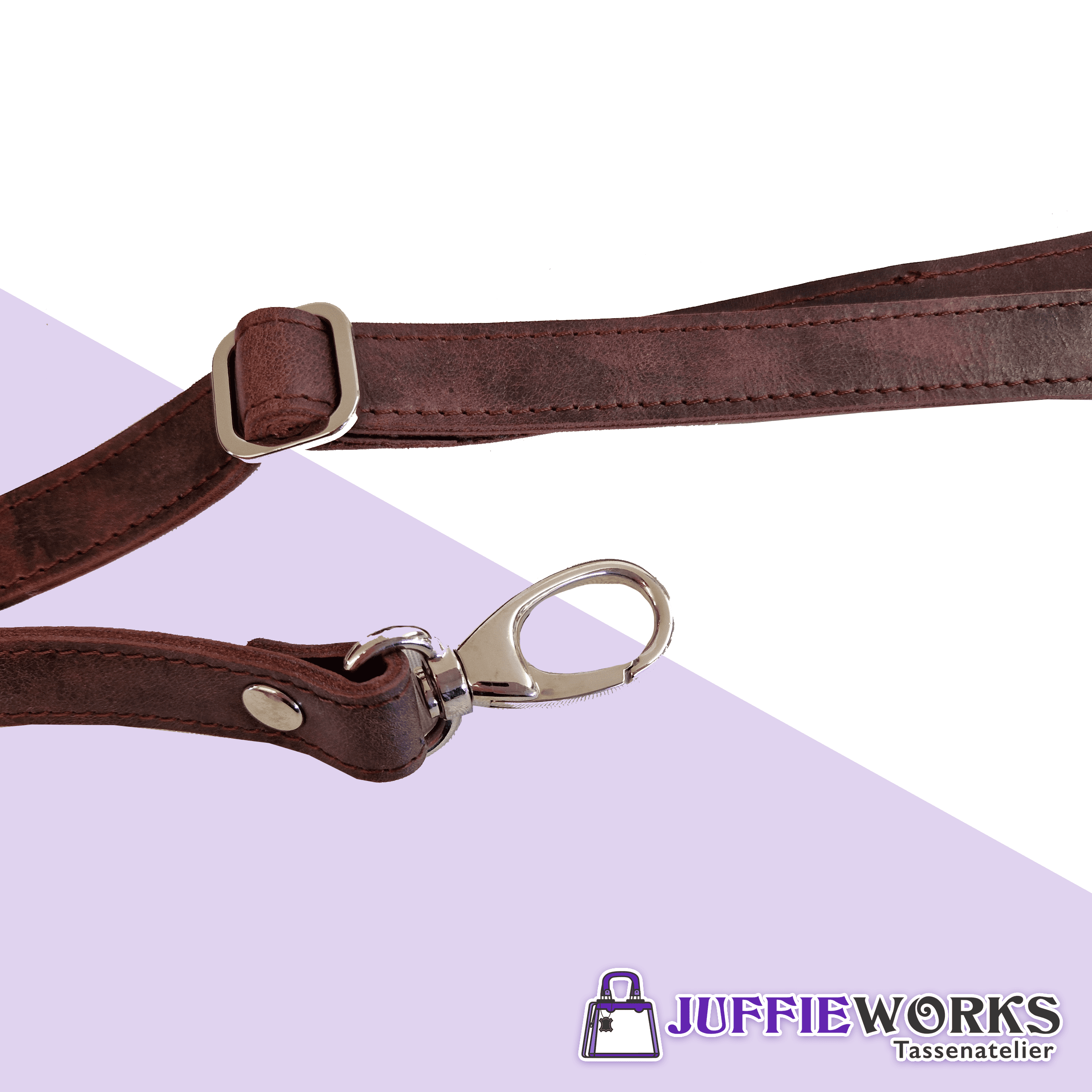 Voor optimaal draagcomfort is het tasje voorzien van een in lengte verstelbare draagriem. Hierdoor kun je hem op verschillende manieren dragen, bijvoorbeeld als schoudertas of crossbody. Dit maakt de tas veelzijdig en geschikt voor diverse gelegenheden. De nikkel fournituren geven het geheel een moderne en frisse uitstraling en vormen een mooi contrast met de warme auberginekleur van het leer.